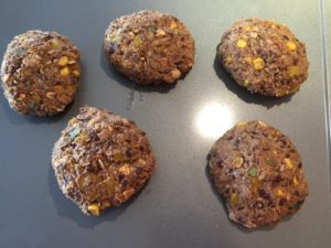 Divide the mixture into 8 burgers. Dredge the burgers in cornmeal. Chill for 30 minutes (if you didn’t make it earlier and chill it then).