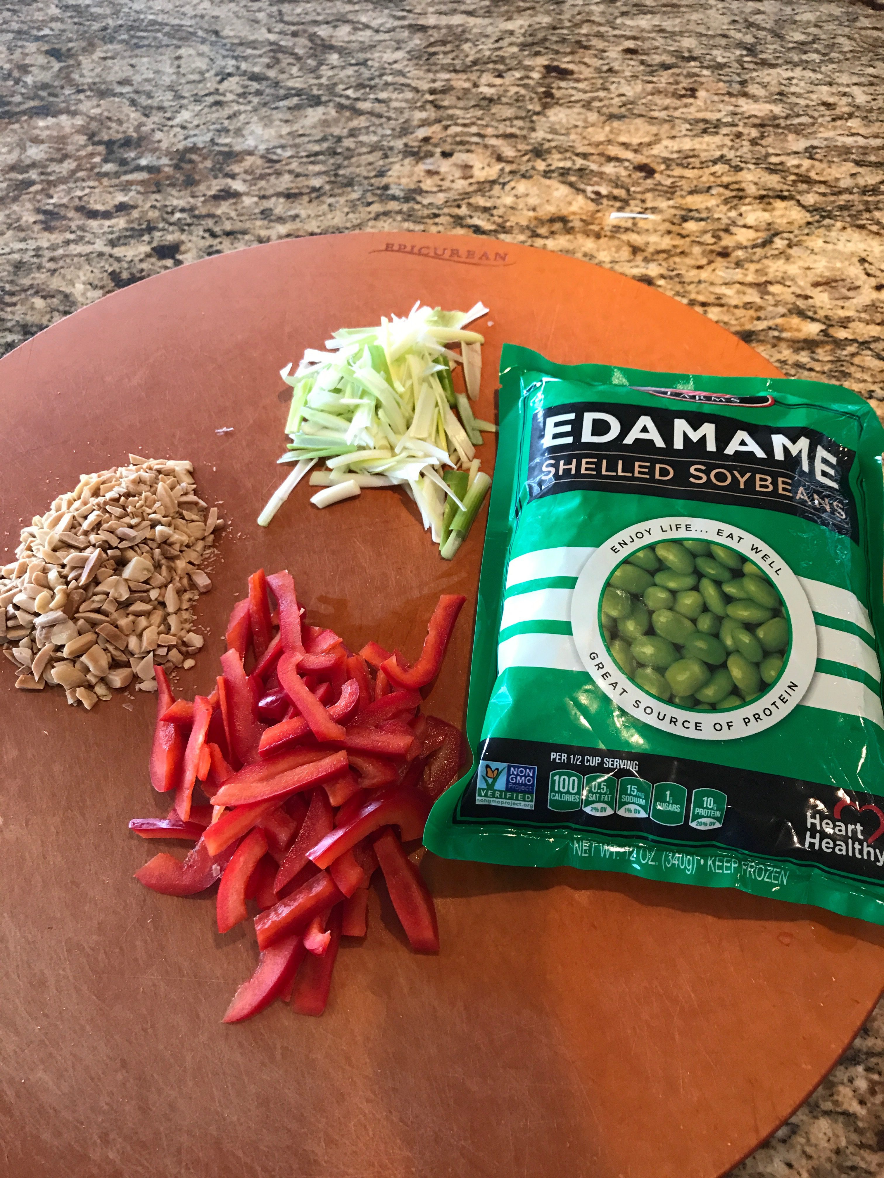 1 cup of frozen shelled edamame (with the frozen veggies – now a days you can get them most anywhere)