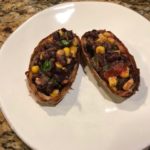 To fill them you can do all kinds of things – use your imagination. What I did in this case was to combine 1 can of black beans (rinsed), 1 cup of frozen corn, 1 Tablespoon of fresh lime juice, 1/4 cup of diced red onion, 1/4 teaspoon of both chili powder and cumin, 1/2 cup of chopped cilantro, salt and pepper to taste.