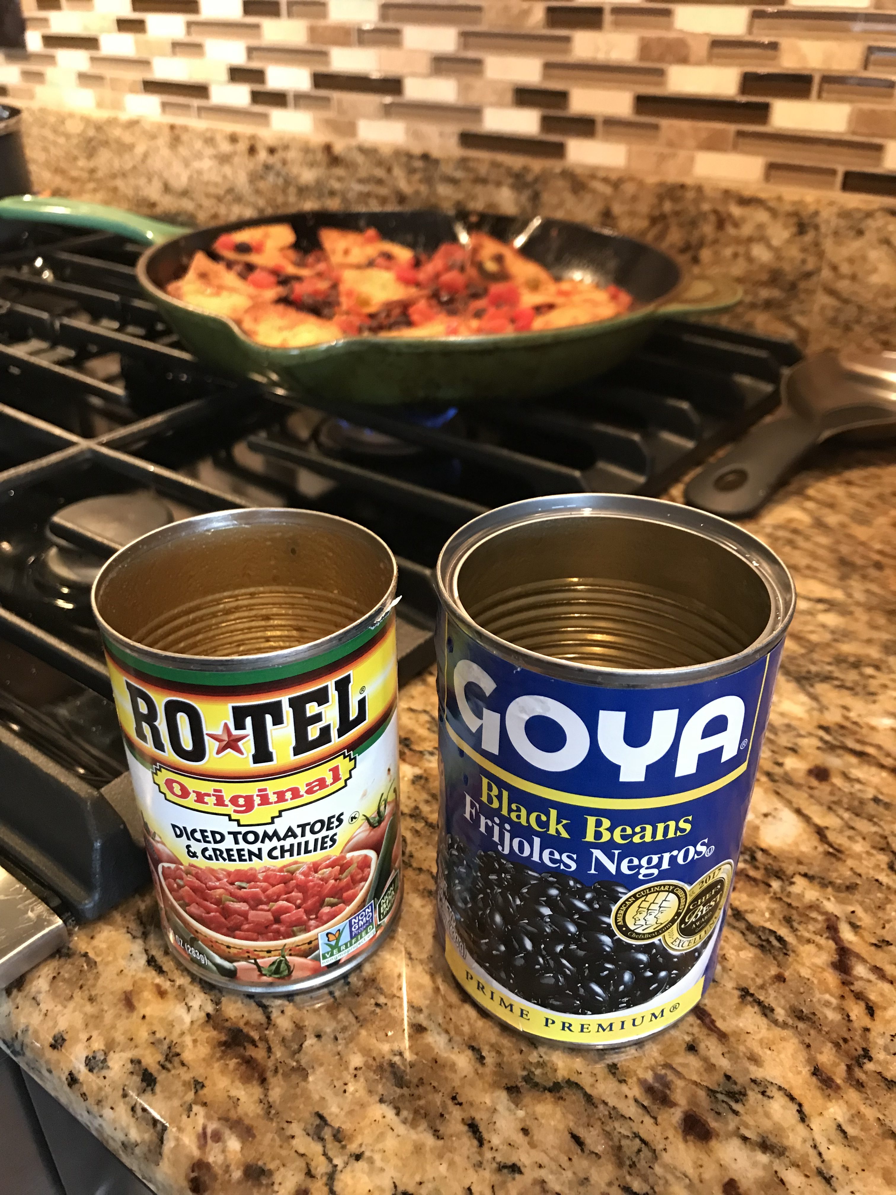 2. Pour the salsa and the diced tomatoes over the tortillas, and cook, stirring, until the tortillas soak up most of the tomato mixture, about 1 minute. Add the beans and stir to heat.